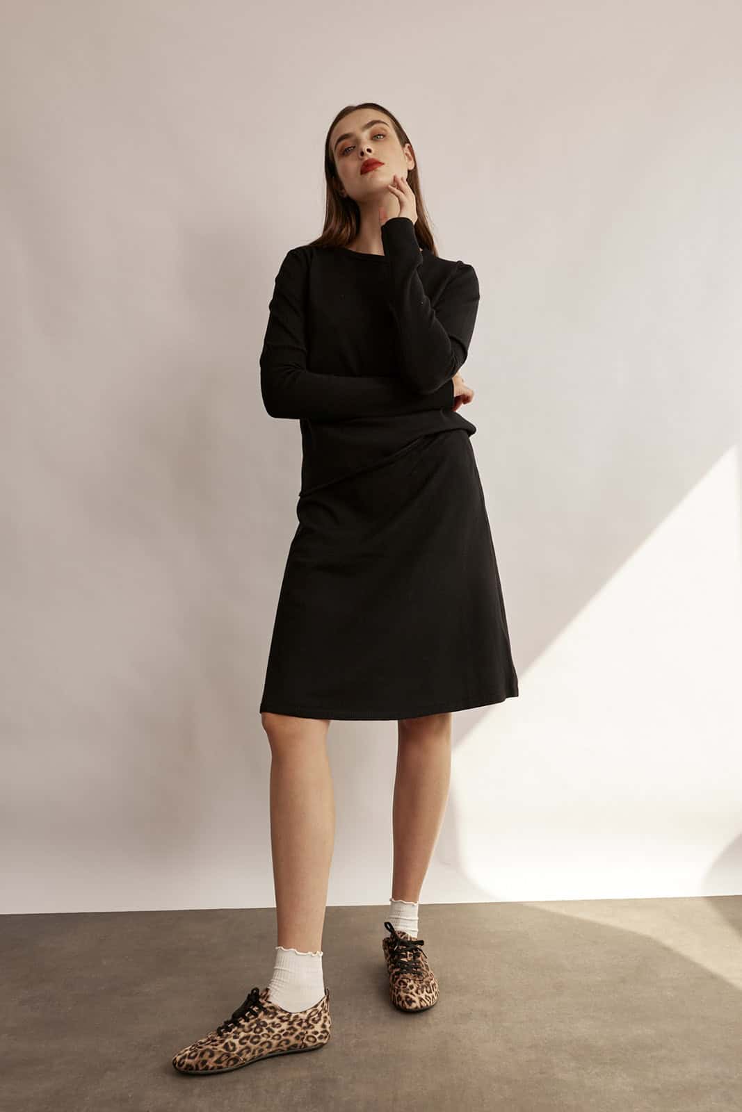 Gently fitted at the waist and flowing downwards, creating a graceful and elegant silhouette. The soft, stretchy fabric embraces the body with comfort, perfect for everyday wear or a casual evening out.