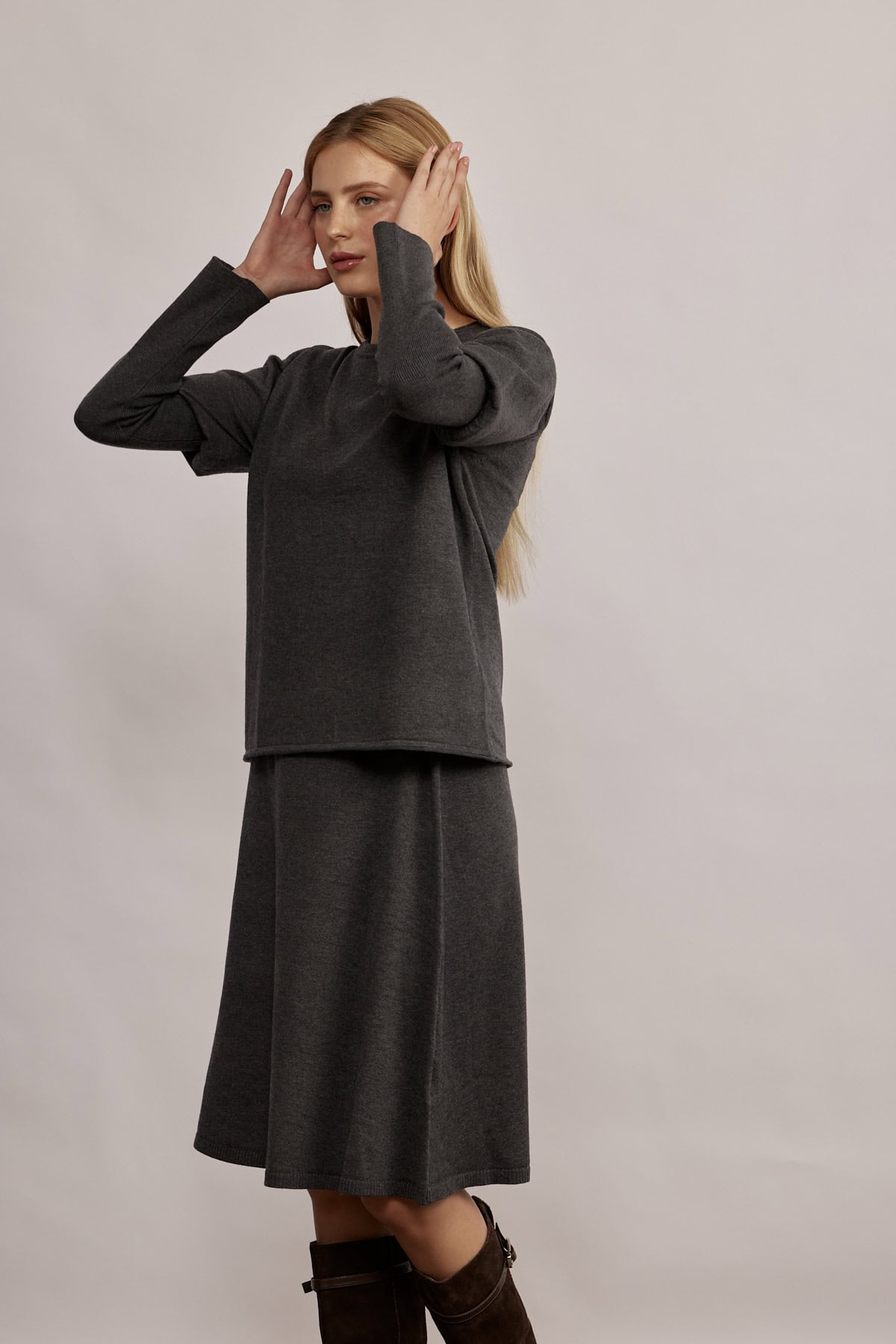 Gently fitted at the waist and flowing downwards, creating a graceful and elegant silhouette. The soft, stretchy fabric embraces the body with comfort, perfect for everyday wear or a casual evening out.