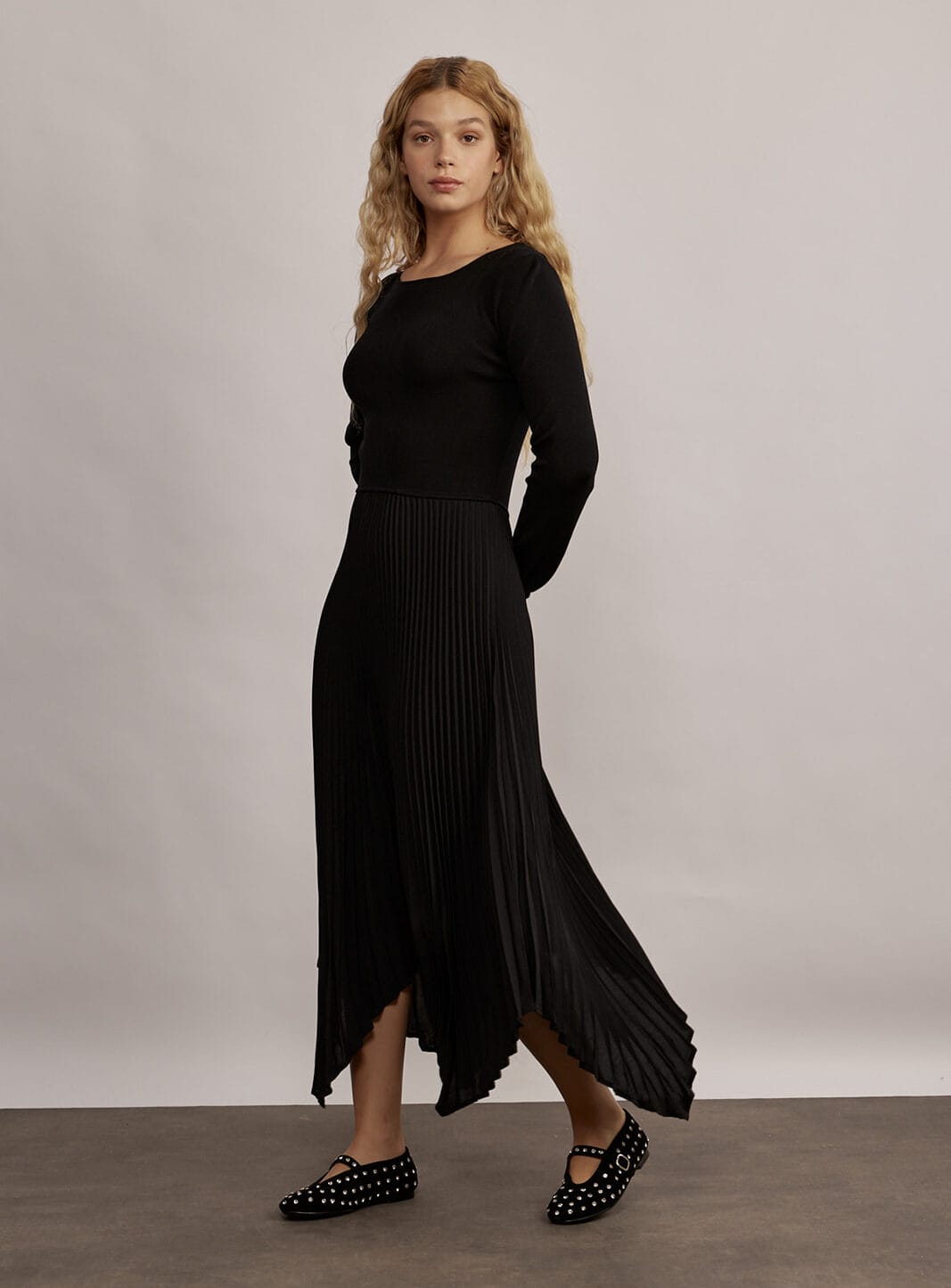 DRESS WITH KNITTED TOP AND PLEATS SKIRT